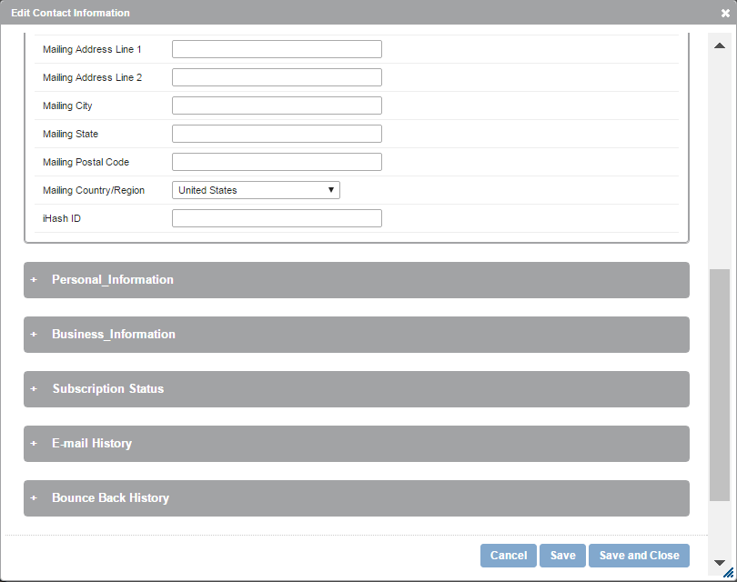 - Bounce Back History will show any “Hard” bounce back history on the contact. A Hard Bounce Back is attempted to be delivered but it bounced (mailbox not found, host not found, etc.)