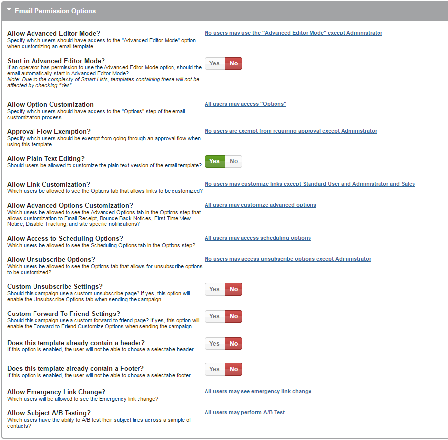 - Allow Unsubscribe Options – Default set to allow Administrators Only to access this tab