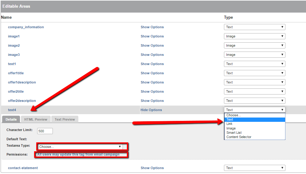 - To make the editable area contain an image, select “Image” from the tag type drop down.