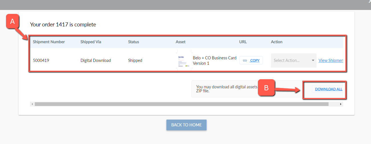 - Once you’ve clicked “Checkout” from the cart, you will be taken to the download screen if all of your collateral are digital download files.